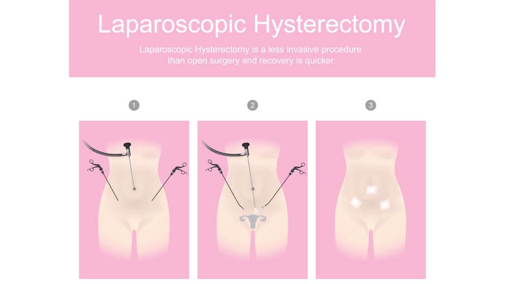 - Laparoscopic hysterectomy – removal of the uterus and cervix using a camera and fine instruments inserted through small incisions