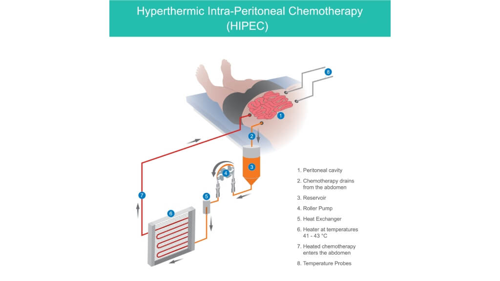 - Hyperthermia and HIPEC – heating tumor tissues or delivering heated chemotherapy directly into the abdominal cavity to enhance drug penetration.