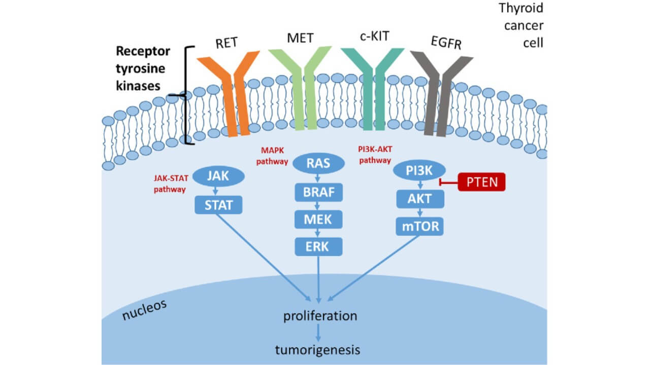 In the case of anaplastic and medullary thyroid cancer, targeted therapy shows promising results: it helps to stop the progression of the disease, reduce the volume of the tumor and improve the prognosis. This is achieved by affecting the VEGF, RET or BRAF receptors, which regulate the reproduction of tumor cells [10].