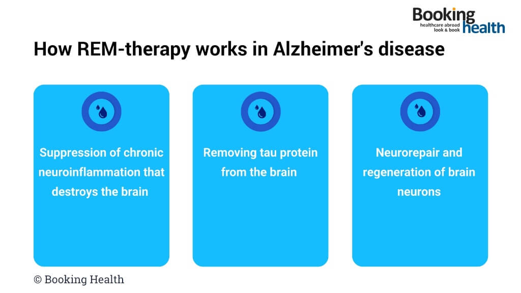 The basis of the development of Alzheimer's disease is a chronic, gradual destruction of the cerebral cortex. Most of all, the areas of the cerebral cortex responsible for the formation of emotions and memory are affected, which causes the following typical symptoms of the disease: forgetfulness, speech disorders, a lack of interest in life, problems communicating with people, and problems with self-care skills. Modern clinical trials have revealed a close relationship between chronic neuroinflammation and the development of Alzheimer's disease. Innovative REM-therapy suppresses neuroinflammation, prevents the development of Alzheimer's disease, and allows for significant improvement in people with this pathology.
