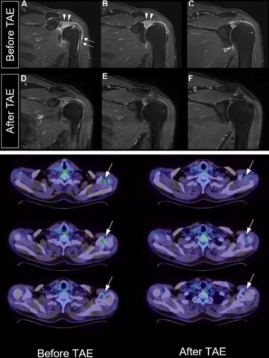 Advanced joint imaging techniques, including arthrography with contrast (MR arthrography), allow for precise visualization of the abnormal vascular networks targeted by embolization, enhancing both diagnostic accuracy and treatment planning.