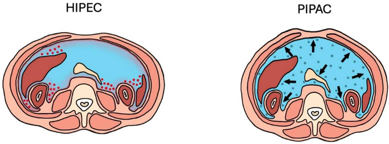 PIPAC delivers chemotherapy as an aerosolized substance under laparoscopic pressurization, leading to greater spatial distribution and tissue penetration of the drug.