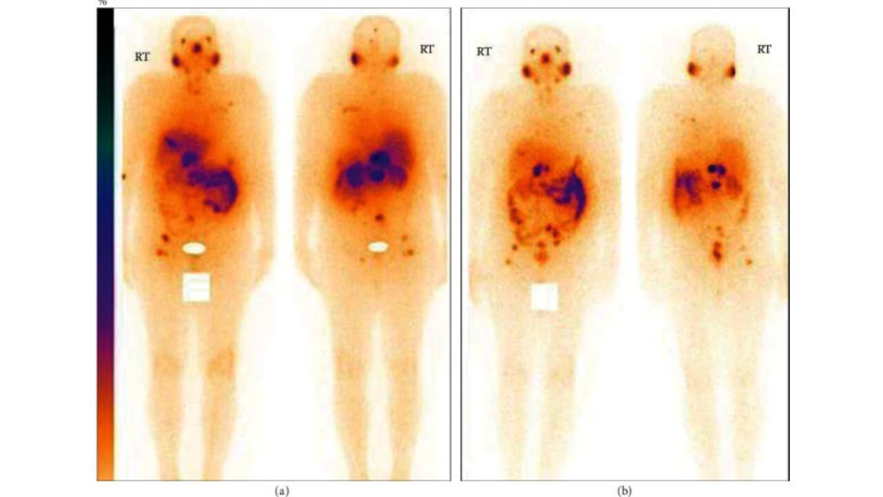 - التأثير التشخيصي: في الوقت نفسه، يُطلق اللوتيتيوم-177 كمية صغيرة من إشعاع جاما. يمكن التقاط ذلك خلال الفحص، مما يسمح للأطباء برؤية المكان الذي ذهب إليه الدواء بالضبط وكيف يستجيب السرطان له [4, 5].